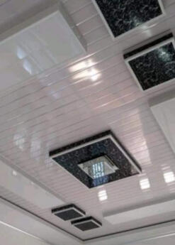 Plafon ringan,elastis,kokoh,mempunyai ketebalan 8mm dengan struktur berongga sehingga plafon PVC ini mempunyai bobot ringan tetapi masih padat dan kokoh,anti air,anti jamur,anti rayap,lebih awet,lebih modern dan banyak pilihan motifnya